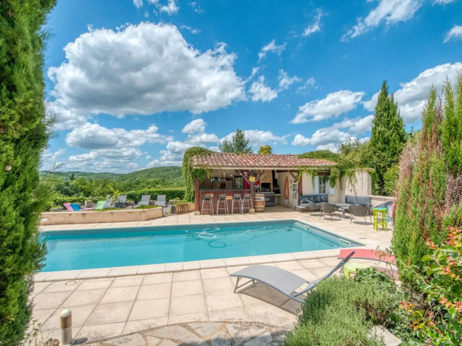 Отель Splendid Holiday Home in Dégagnac with heated Swimming Pool and jacuzzi, адрес на карте Деганьяк, Lieu dit Gaury, Dégagnac, 46340, с характеристиками номеров и возможностью онлайн бронирования на площадке vashotel.ru , цены проживания и удобства.
