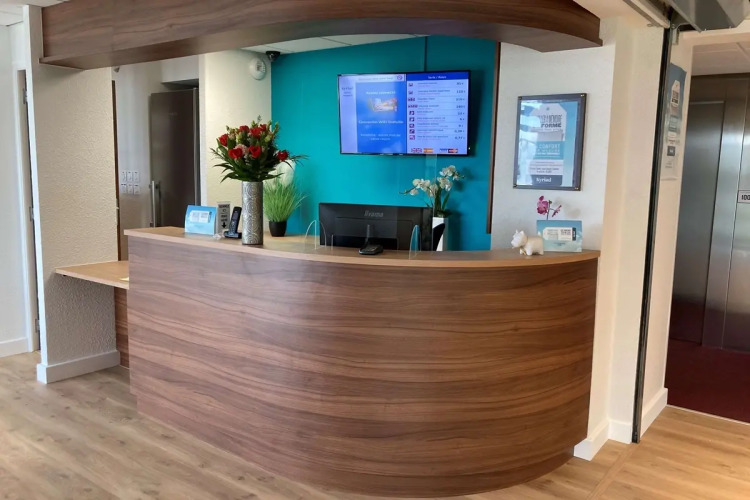 Отель Kyriad Dol de Bretagne 3 звезды, адрес на карте Доль-де-Бретань, 28 rue de la Rouelle, с описанием номеров и доступностью онлайн бронирования на площадке ВашОтель.RU , стоимость проживания и удобства.