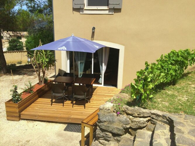 Отель Graceful Cottage in Faucon With Terrace, адрес на карте Фокон, 280 rue Montée de la Pinède, с описанием номеров и доступностью онлайн бронирования на ресурсе vashotel.ru , стоимость проживания и удобства.