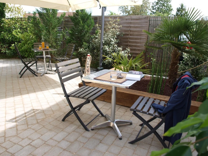 Отель B&B La Cabane De Noreda 3 звезды, адрес на карте Гюжан-Местрас, 15 bis, rue Pierre Daney, 33470 Gujan-Mestras, France, с характеристиками номеров и возможностью онлайн бронирования на ресурсе vashotel.ru , стоимость проживания и удобства.