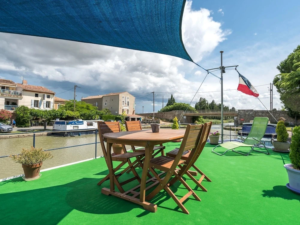 Отель Comfortable House Boat in Homps with Roof Terrace, адрес на карте Хомпс, 11200 Homps, France, с описанием номеров и доступностью онлайн бронирования на ресурсе ВашОтель.RU , стоимость проживания и удобства.