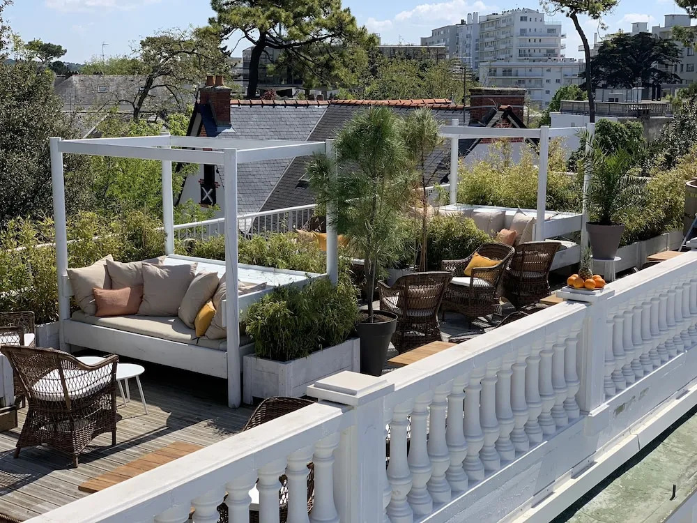 Отель Hôtel La Palmeraie, адрес на карте Ла Боль Ескоблак, 7 Avenue Des Cormorans, с описанием номеров и возможностью онлайн бронирования на сайте vashotel.ru , цены проживания и удобства.
