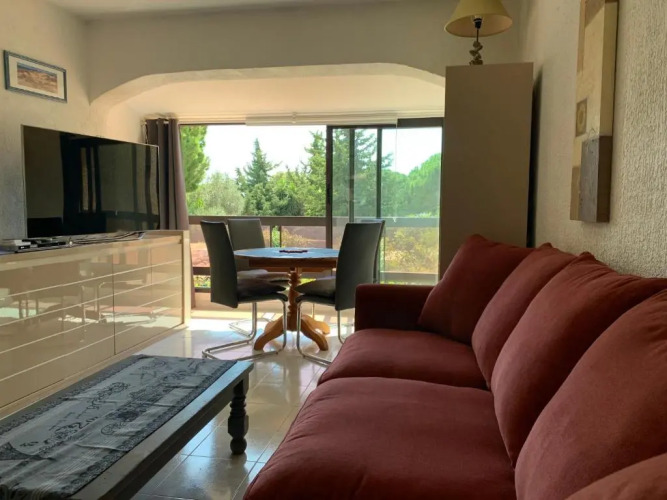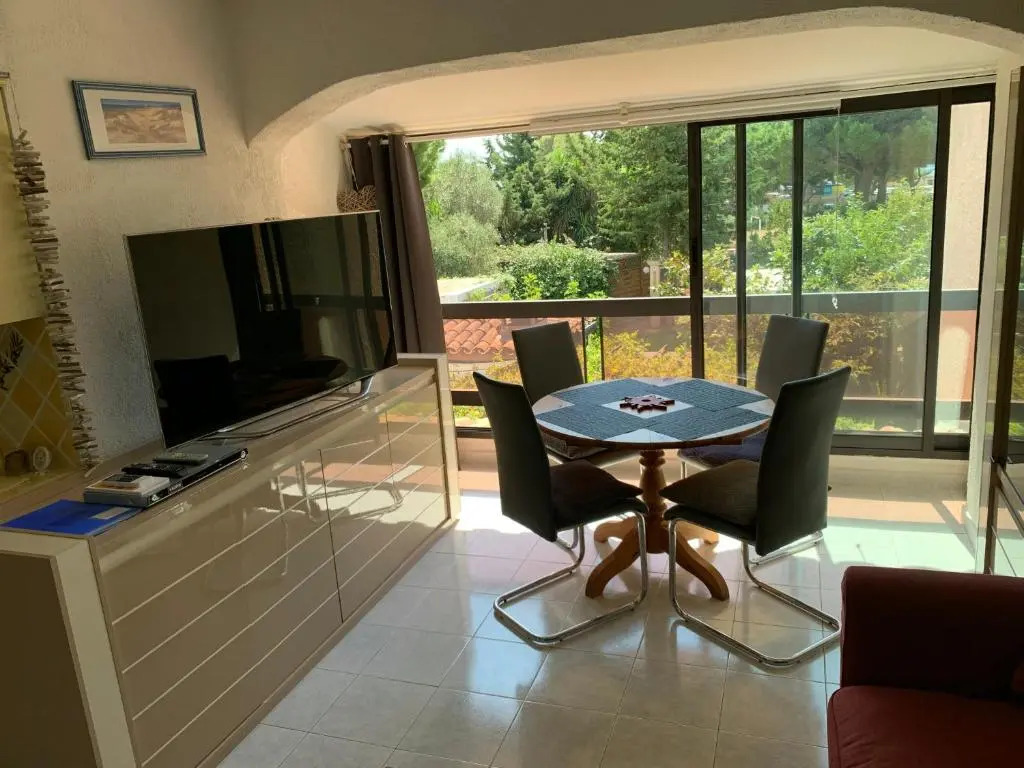 Отель Appt T2 tout confort face plage Argentière avec grande terrasse, адрес на карте Ла-Лонд-ле-Мор, Hameau de l'Argentière 2, с описанием номеров и возможностью онлайн бронирования на площадке vashotel.ru , цены проживания и удобства.