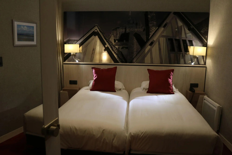 Отель Les Terrasses Poulard 3 звезды, адрес на карте Мон-Сен-Мишель, Grande rue B.P. 18, с характеристиками номеров и правом онлайн бронирования на ресурсе vashotel.ru , стоимость проживания и удобства.
