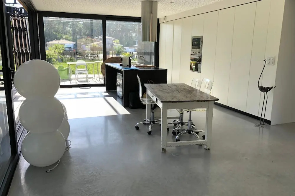 Отель Maison d'architecte atypique à Lège Cap Ferret, адрес на карте Леж-Кап-Ферре, 8 allée des Landes de Simon, с описанием номеров и доступностью онлайн бронирования на сайте ВашОтель.RU , цены проживания и удобства.