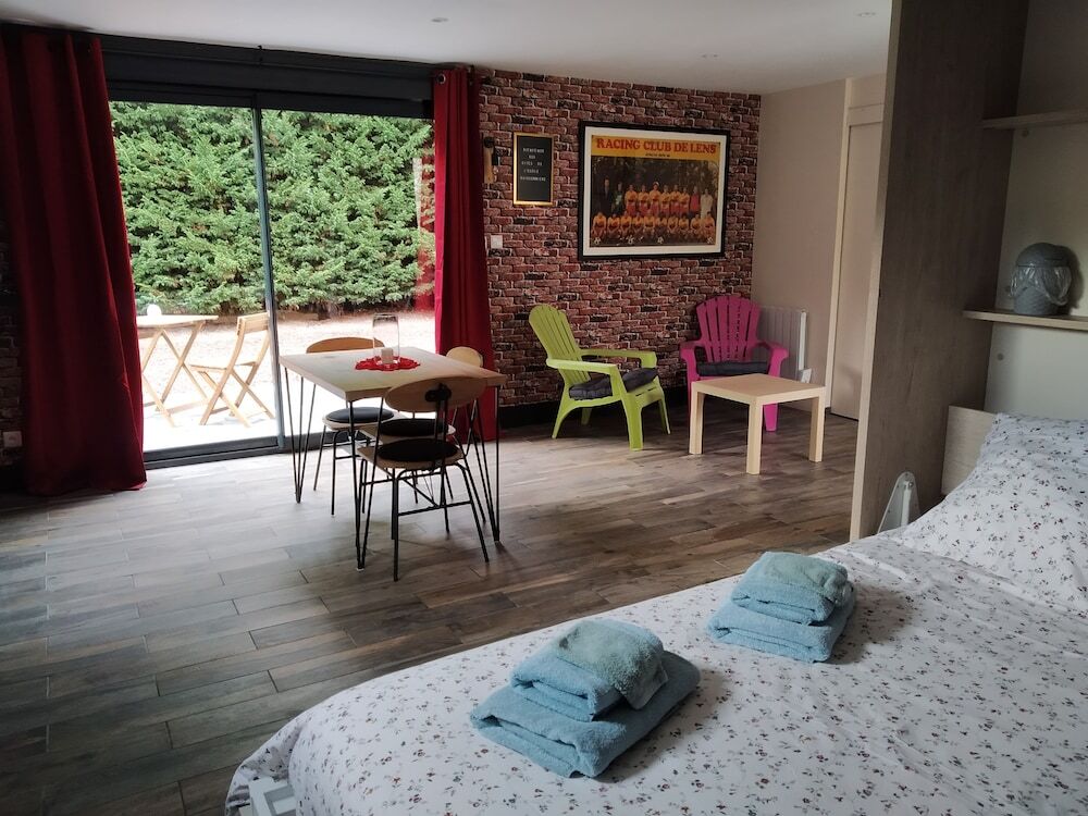 Отель Les Gîtes de l'Ecole Buissonnière 4 звезды, адрес на карте Ленс, 4 Square Henri Noguères, 62300 Lens, France, с характеристиками номеров и возможностью онлайн бронирования на площадке vashotel.ru , цены проживания и удобства.