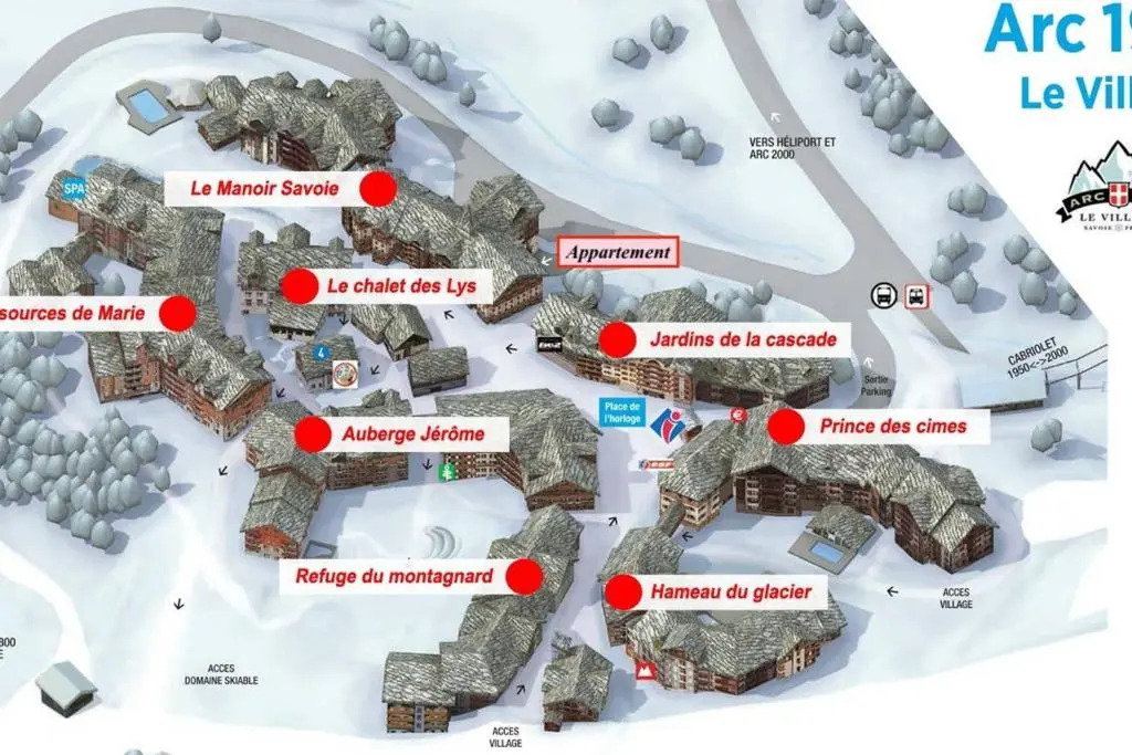 адрес на карте Лез Арк, Residence Manoir Savoie App 600 Les Arcs 1950 le Village, Les Arcs, с характеристиками