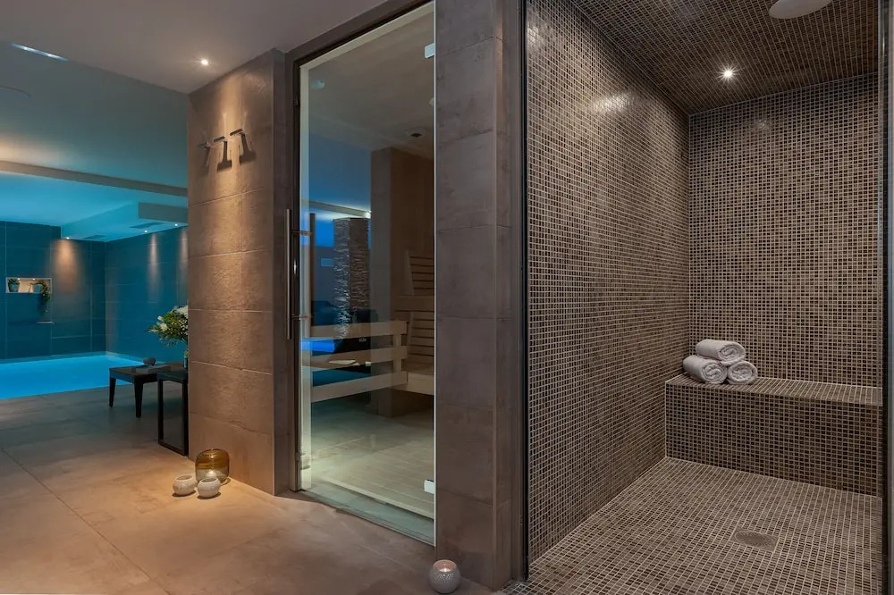 Также для гостей в апартаментах: сауна, паровая баня и спа-центр. Здесь будем баловать себя водными процедурами: есть крытый бассейн. Удобно для гостей с ограниченными возможностями: на верхние этажи гостей поднимает лифт.