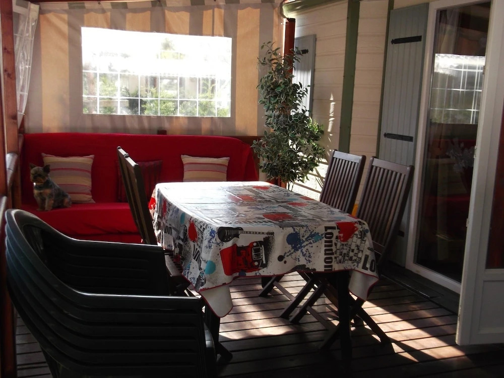 Отель Cosy, 2-bedroom Mobile Home With a Furnished Terrace and Serene Garden, адрес на карте Ле-Мат, 2344 Route de la Fouasse, с характеристиками номеров и возможностью онлайн бронирования на сайте ВашОтель.RU , стоимость проживания и удобства.