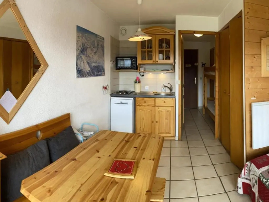 Отель Studio Hauteluce, 1 pièce, 4 personnes - FR-1-293-348, адрес на карте Ле Сез, 465/481 rue de la Traie Les Saisies, с описанием номеров и доступностью онлайн бронирования на сайте ВашОтель.RU , стоимость проживания и удобства.