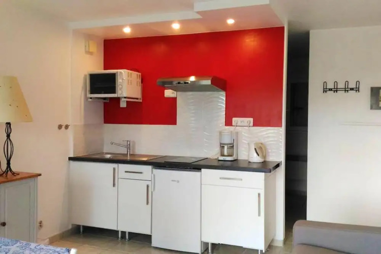 Отель Studio in Locmariaquer, With Wonderful sea View and Enclosed Garden, адрес на карте Локмарьаке, 41 Route de Kerpenhir, с характеристиками номеров и доступностью онлайн бронирования на площадке vashotel.ru , цены проживания и удобства.