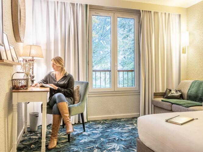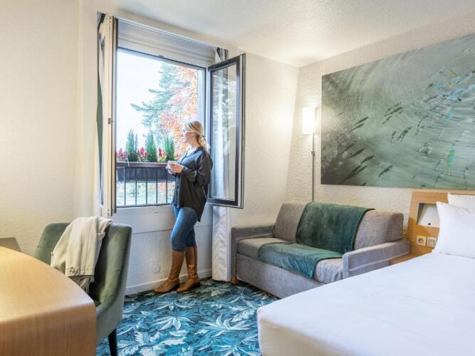 Номер уютно обставлен и оснащён необходимым, чтобы отдохнуть после долгого и насыщенного дня. Имеются душ, телевизор, мини-бар и тапочки. Оснащение зависит от выбранной категории номера.