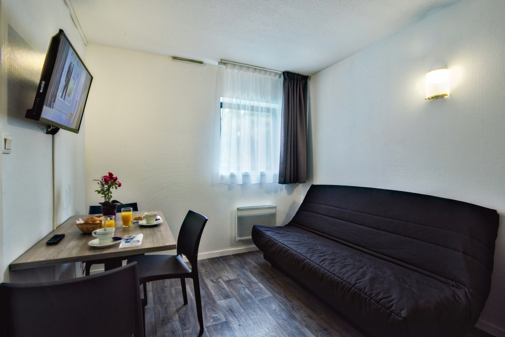 Отель Zenitude Hotel-Residences Bordeaux Aeroport Merignac 3 звезды, адрес на карте Мериньяк, 33 Avenue Neil Armstrong, с описанием номеров и возможностью онлайн бронирования на ресурсе ВашОтель.RU , цены проживания и удобства.