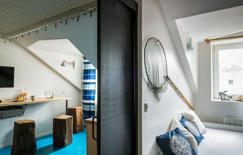 Отель Surprenantes- La Pêcherie Surprenante, адрес на карте Нант, 12 Rue De La Brasserie, с характеристиками номеров и возможностью онлайн бронирования на площадке vashotel.ru , стоимость проживания и удобства.