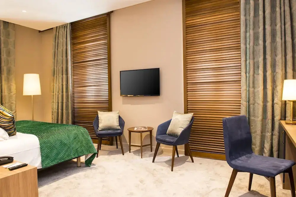 В номере вас будут ждать телевизор и мини-бар. Оснащение зависит от выбранной категории номера.