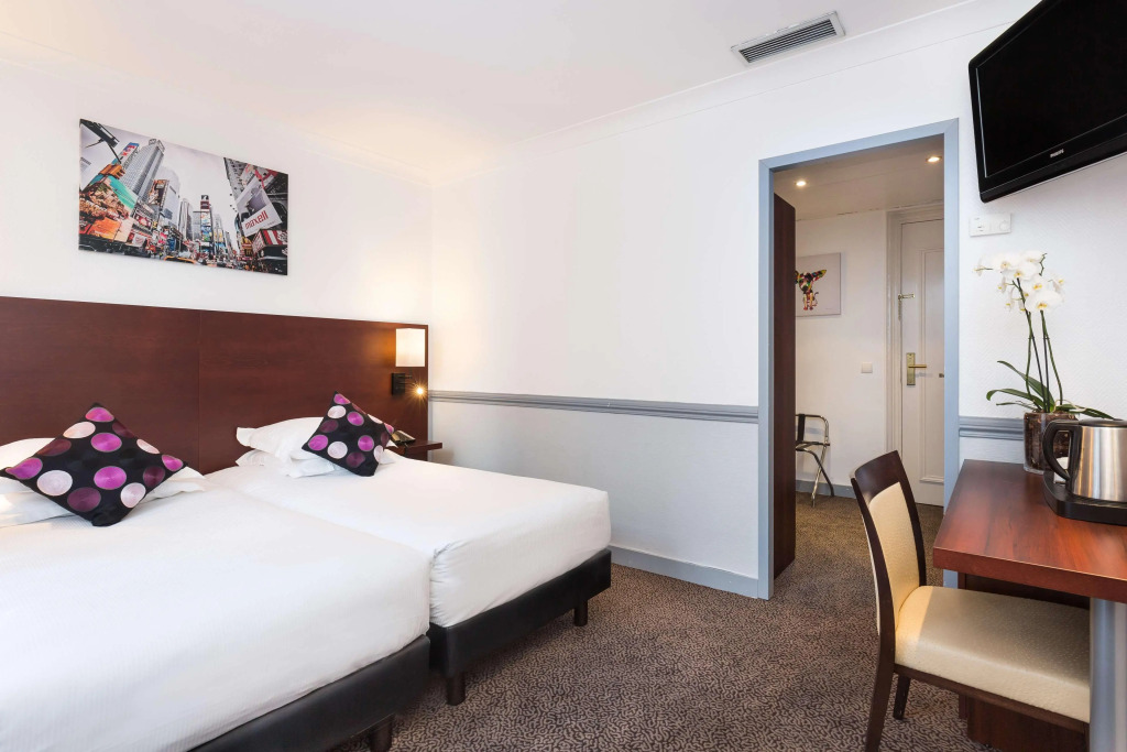 Отель Best Western New York Nice предлагает размещение в 50 уютных номерах, оснащенных ванной комнатой с ванной и раздельным санузлом, а также феном. В каждом номере имеется спутниковое телевидение и система кондиционирования. Прохладительные напитки из мини-бара помогут освежиться в течение дня. Из окон номеров открывается вид на город. Обслуживание номеров осуществляется ежедневно.