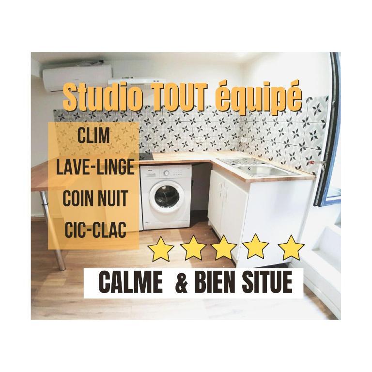 Отель SUPERBE Studio avec coin nuit TOUT EQUIPE ! 1 звезда, адрес на карте Памье, 3 Impasse Poisson, 09100, Pamiers, France, с описанием номеров и доступностью онлайн бронирования на площадке vashotel.ru , цены проживания и удобства.
