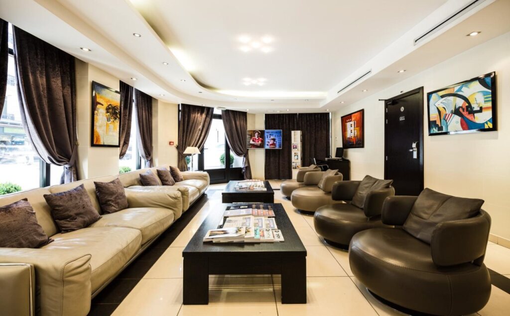 Проживая в отеле Park Lane Paris, вы сможете приятно провести время в небольшом холле, наслаждаясь чтением книги, общением со своей половинкой или вкусной свежей выпечкой. В баре вам подадут освежающие и алкогольные напитки.