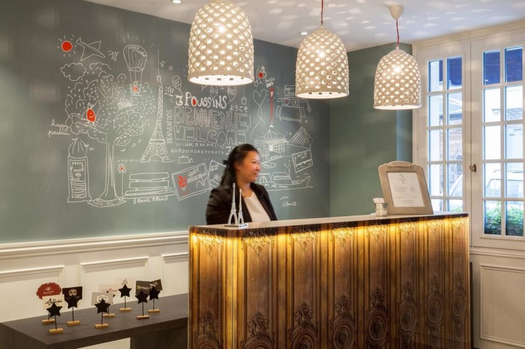 Отель Hôtel des 3 Poussins 3 звезды, адрес на карте Париж, 15 Rue Clauzel, с характеристиками номеров и доступностью онлайн бронирования на площадке vashotel.ru , цены проживания и удобства.