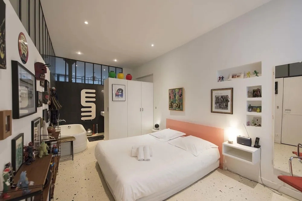 Отель Loft Style Apartment With A Workshop Studio, адрес на карте Париж, 25 rue des Petits Hotels, с характеристиками номеров и возможностью онлайн бронирования на площадке ВашОтель.RU , цены проживания и удобства.