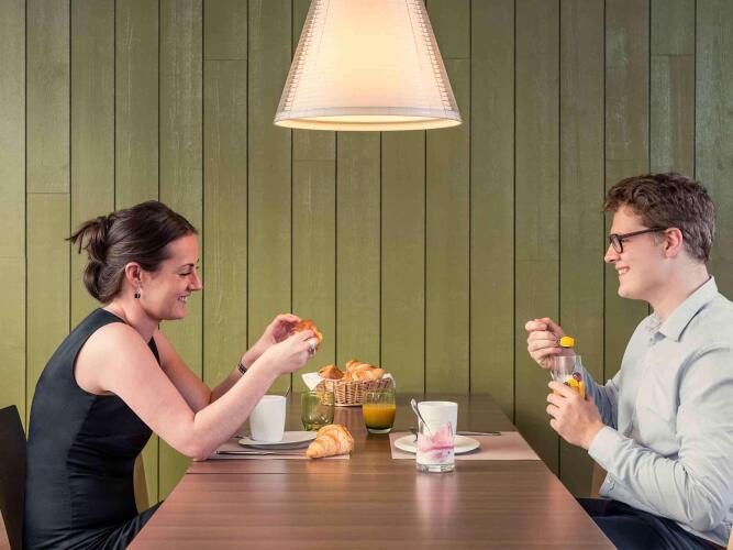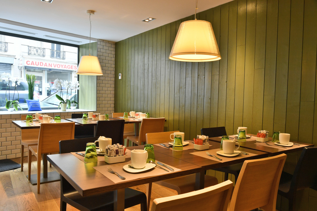 Каждое утро постояльцев отеля ждут сервированные столы в комнате для завтрака, в отеле также работает ресторан, где можно отведать блюда французской и европейской кухни.