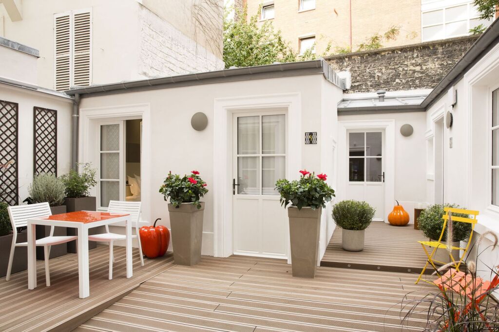 В отеле Duette Paris 28 индивидуально декорированных и меблированных номеров с видом на город или внутренний двор.