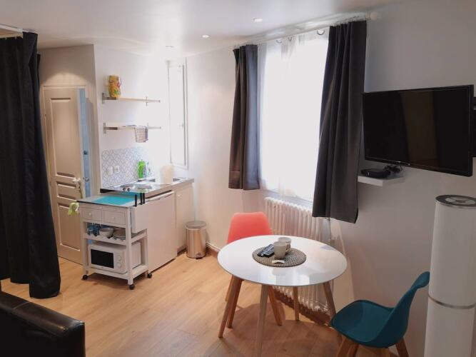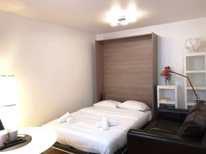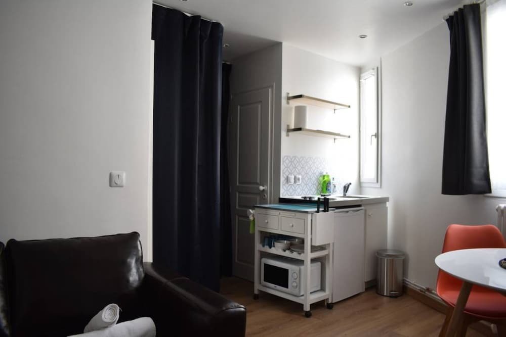 Отель Renovated Studio Near Buttes Chaumont, адрес на карте Париж, Rue Rebeval, с характеристиками номеров и возможностью онлайн бронирования на площадке ВашОтель.RU , стоимость проживания и удобства.