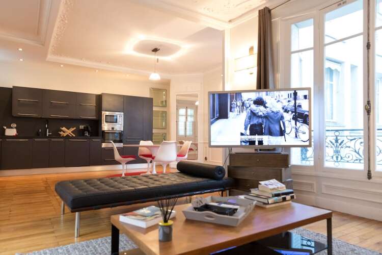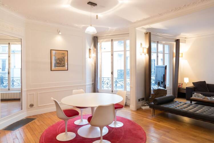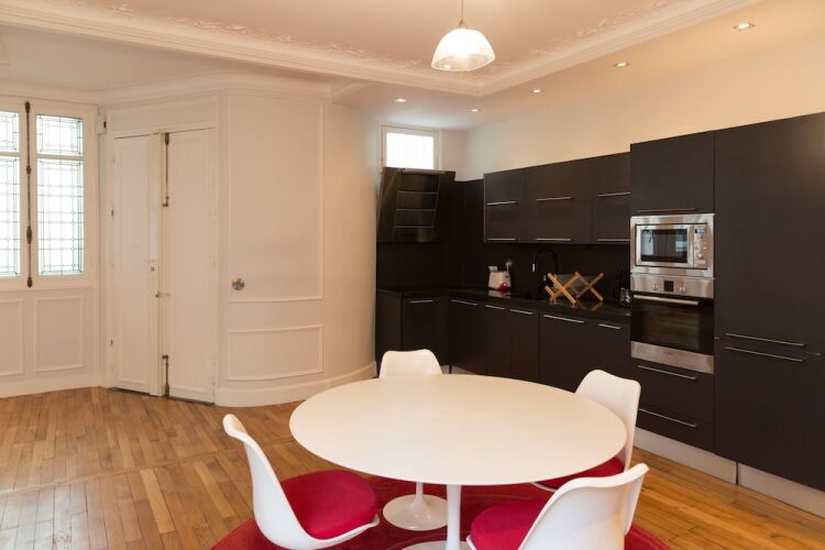 Отель Spacious apartement 2 bedrooms, адрес на карте Париж, 11 Rue Marbeau, с описанием номеров и доступностью онлайн бронирования на ресурсе vashotel.ru , цены проживания и удобства.