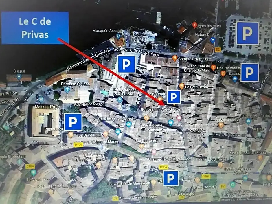 Отель Le C de Privas 2 chambres au Cœur de la ville, адрес на карте Прива, 1bis, Place de La République, с описанием номеров и доступностью онлайн бронирования на площадке vashotel.ru , цены проживания и удобства.