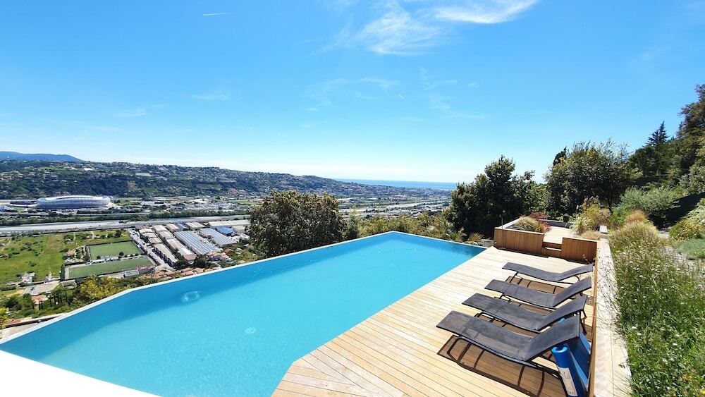 Отель Villa Californienne Vue Mer Piscine, адрес на карте Сен-Лоран-дю-Вар, 4412 Route De Saint-Jeannet, с характеристиками номеров и правом онлайн бронирования на ресурсе vashotel.ru , цены проживания и удобства.