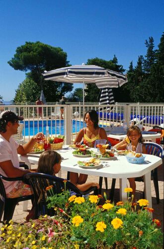 По утрам гостей ждет вкусный завтрак «шведский стол», который в летнее время подают на открытой террасе с видом на Средиземное море. В ресторане вам подадут блюда французской кухни, а в баре вас ожидает широкий выбор спиртных напитков и легких закусок.