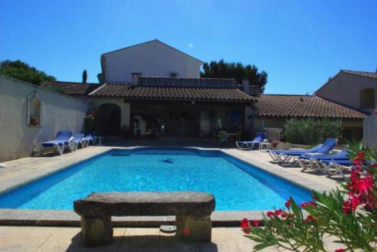The outdoor swimming pool is shared with the guests staying in the guest house next door.