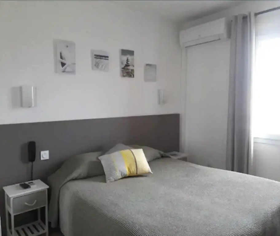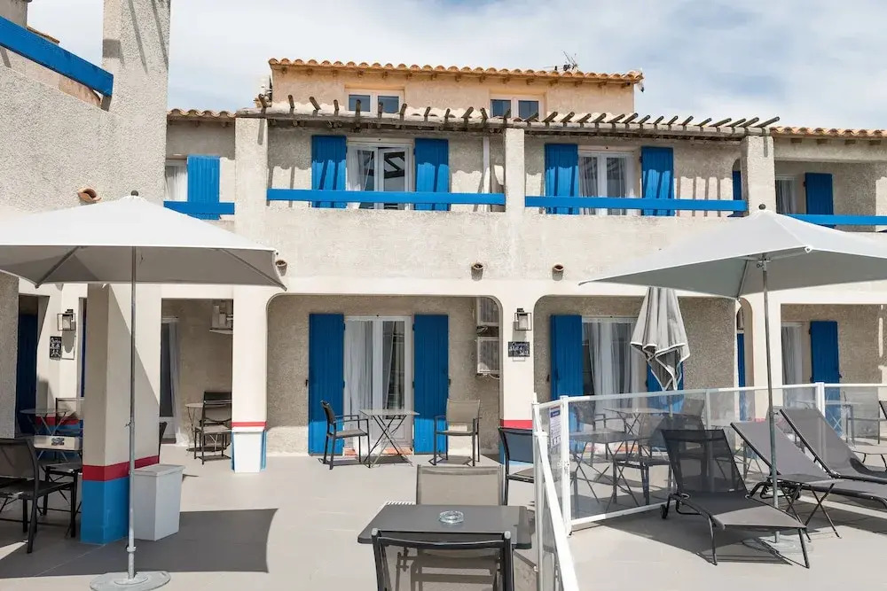 Путешествовать экономно — легко. Отель «Hotel Le Bleu Marine» расположен в Сент-Мари-де-ла-Мере. Этот отель находится в самом центре города. Утром — выпейте кофе, наблюдая из окна за жизнью города. Рядом с отелем — Plage Est, Пляж "Сент-Мари-де-ла-Мер" и Plage des Arenas.