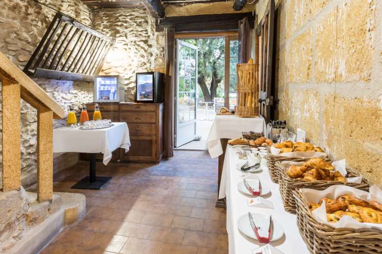 В отеле просторный ресторан с террасой, выходящей в сад, где в теплое время года накрывают столики на завтрак шведский стол. На обед и ужин вам предложат блюда прованской кухни, приготовленные из сезонных и местных продуктов, а в охотничий сезон здесь можно заказать дичь. Расслабиться за бокалом любимого напитка вы сможете в баре.