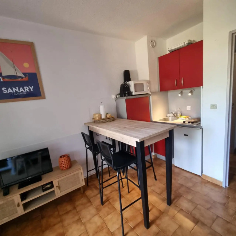 Отель Studio 5mn à pieds de la mer 1 звезда, адрес на карте Санари-сюр-Мер, 620 Chemin De Bacchus, 83110, Sanary-Sur-Mer, France, с описанием номеров и правом онлайн бронирования на сайте vashotel.ru , цены проживания и удобства.