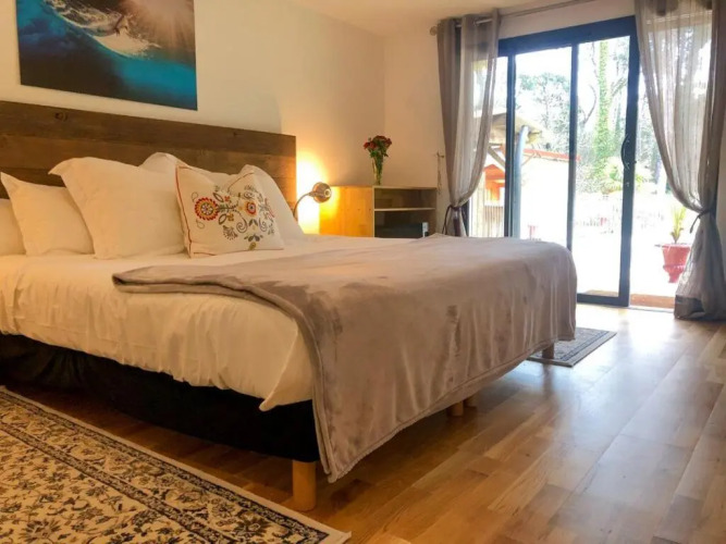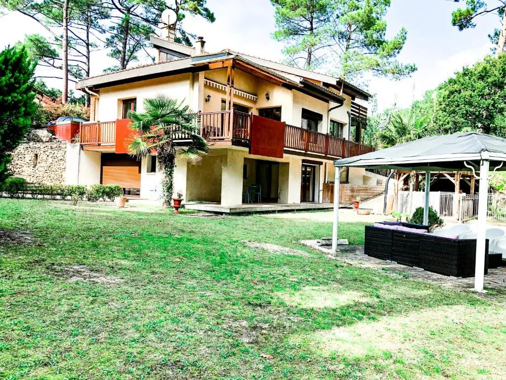 Отель Villa in the forest of Seignosse 600m from the beach Great for large groups, адрес на карте Сейнос, 9 Avenue des Chais, с характеристиками номеров и правом онлайн бронирования на площадке ВашОтель.RU , цены проживания и удобства.