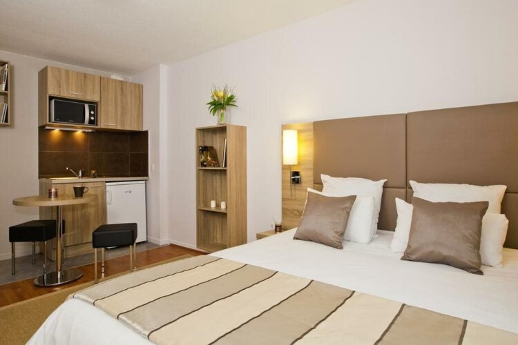 Этот небольшой отель предлагает номера с собственной мини-кухней и всеми необходимыми для полноценного отдыха удобствами. Рядом с отелем вы найдете множество разнообразных ресторанов и кафе, где сможете как позавтракать в типично французском стиле, так и провести приятный вечер.