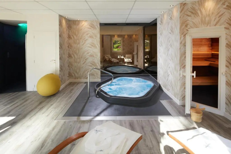 В ресторане отеля Aigue Marine Hôtel предлагается завтрак, второй завтрак и обед. На территории отеля работает бар в лобби отеля. За дополнительную плату отель ежедневно предлагает завтрак (шведский стол с горячими блюдами). В отеле имеются места отдыха и развлечений: открытый бассейн, спа-ванна и сауна. Бесплатный беспроводной доступ в Интернет в зонах общественного пользования. Площадь бесплатной парковки для гостей ограничена и предоставляется в порядке очереди. Дополнительные услуги отеля включают следующее: пристань, кафетерийкафе и многоязычный персонал. Это отель для некурящих. Отель был полностью отремонтирован в 2010 г.
