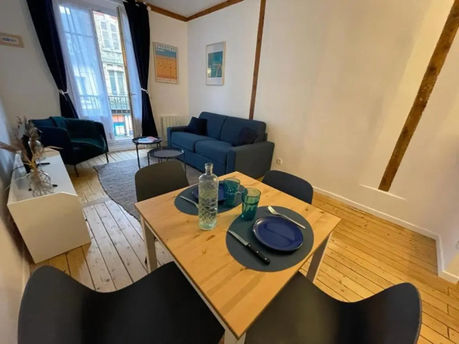 Отель Le « Blanc Bleu »-charmant 2 pièces /3 min Gare 1 звезда, адрес на карте Трувиль-сюр-Мер, 169 Rue Général De Gaulle, 14360, Trouville-Sur-Mer, France, с характеристиками номеров и доступностью онлайн бронирования на сайте vashotel.ru , стоимость проживания и удобства.