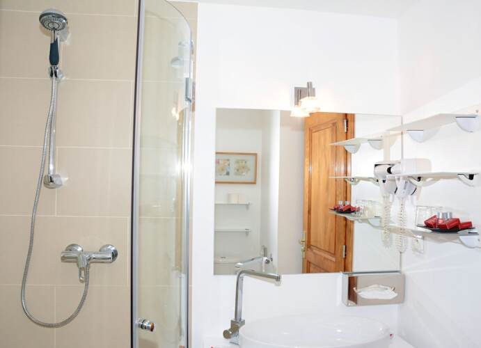 Чтобы вы могли отдохнуть после долгого дня, в номере есть телевизор и халат. Оснащение зависит от выбранной категории номера.