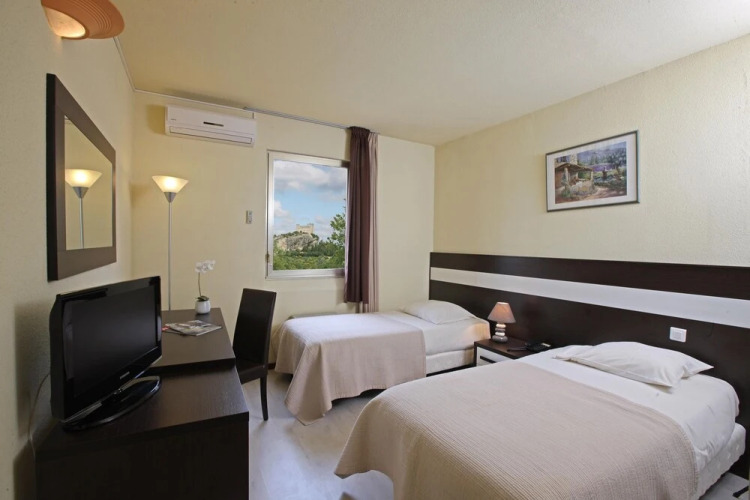 В отеле 50 номеров, оформленных в светлых тонах, с кондиционером, телефоном и телевизором. В ванной комнате вы найдете косметические принадлежности и фен. В некоторых номерах есть балконы или террасы с видом на замок.