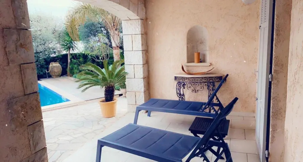 Отель Appartement de 2 chambres avec vue sur la mer piscine privee et jardin clos a Golfe Juan a 3 km de l,