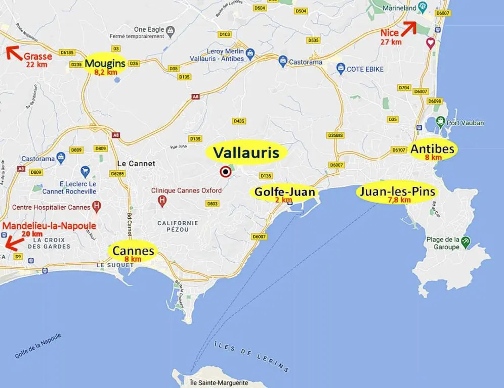 адрес на карте Валори, 45 Avenue Des Jasmins, 06220, Vallauris, France, с описанием