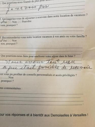 Guests are required to show a photo identification and credit card upon check-in. Please note that all Special Requests are subject to availability and additional charges may apply. Please inform Les Demoiselles à Versailles - Au Pied du Château in advance of your expected arrival time. You can use the Special Requests box when booking, or contact the property directly with the contact details provided in your confirmation. Payment before arrival via bank transfer is required. The property will contact you after you book to provide instructions. Parking is subject to availability due to limited spaces. This property is located in a residential area and guests are asked to refrain from excessive noise. This property will not accommodate hen, stag or similar parties. In response to Coronavirus (COVID-19), additional safety and sanitation measures are in effect at this property. In accordance with government guidelines to minimise transmission of the Coronavirus (COVID-19), this property may request additional documentation from guests to validate identity, travel itinerary and other relevant information, during dates where such guidelines exist. A damage deposit of EUR 700 is required on arrival. You should be reimbursed within 14 days of check-out. You can bring your own bed linen and towels or rent them on site at a EUR 15 extra fee per person, per stay. Managed by a private host