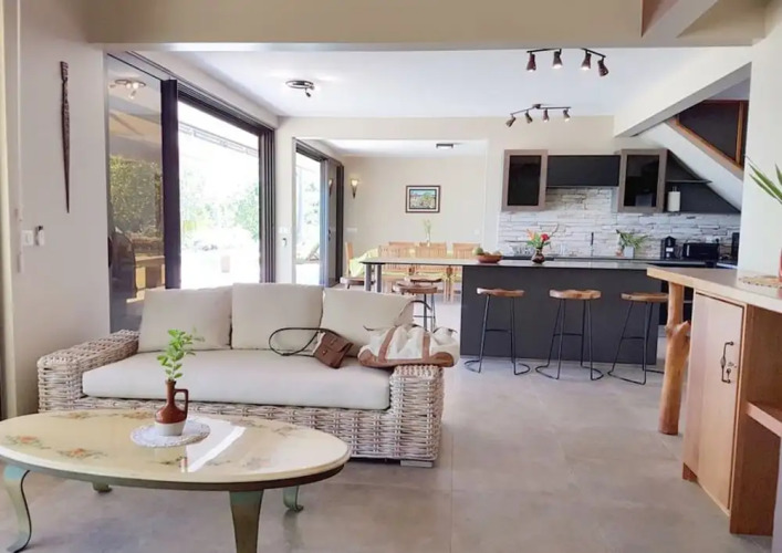 Отель Villa Tiarenui 4 звезды, адрес на карте Муреа, lotissement tiaia maharepa villa tiarenui, 98728 Maharepa, French Polynesia, с описанием номеров и возможностью онлайн бронирования на ресурсе vashotel.ru , цены проживания и удобства.