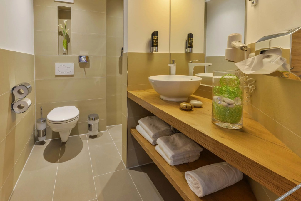 В номере вы найдёте душ и телевизор. Оснащение зависит от выбранной категории номера.