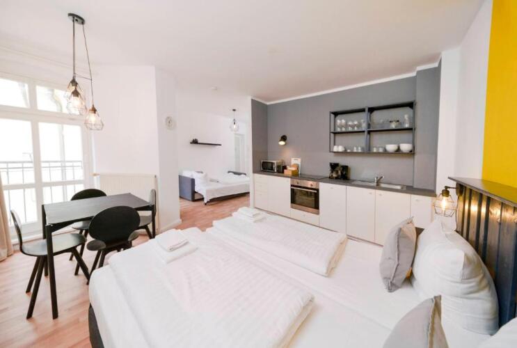 Обратите внимание, что апартаменты комплекса расположены по различным адресам, а регистрация заезда проводится по адресу: Metzer Strasse 8, 10405 Berlin.