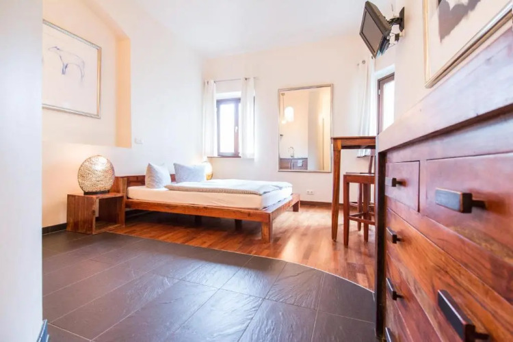 Номер уютно обставлен и оснащён необходимым, чтобы отдохнуть после долгого и насыщенного дня. Имеются душ и телевизор. Оснащение зависит от выбранной категории номера.