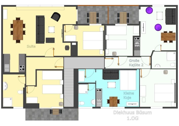 Отель Diekhuus Büsum, адрес на карте Бюзум, Seeschwalbenweg 13, с характеристиками номеров и доступностью онлайн бронирования на сайте ВашОтель.RU , стоимость проживания и удобства.