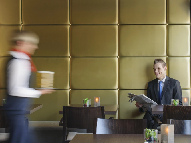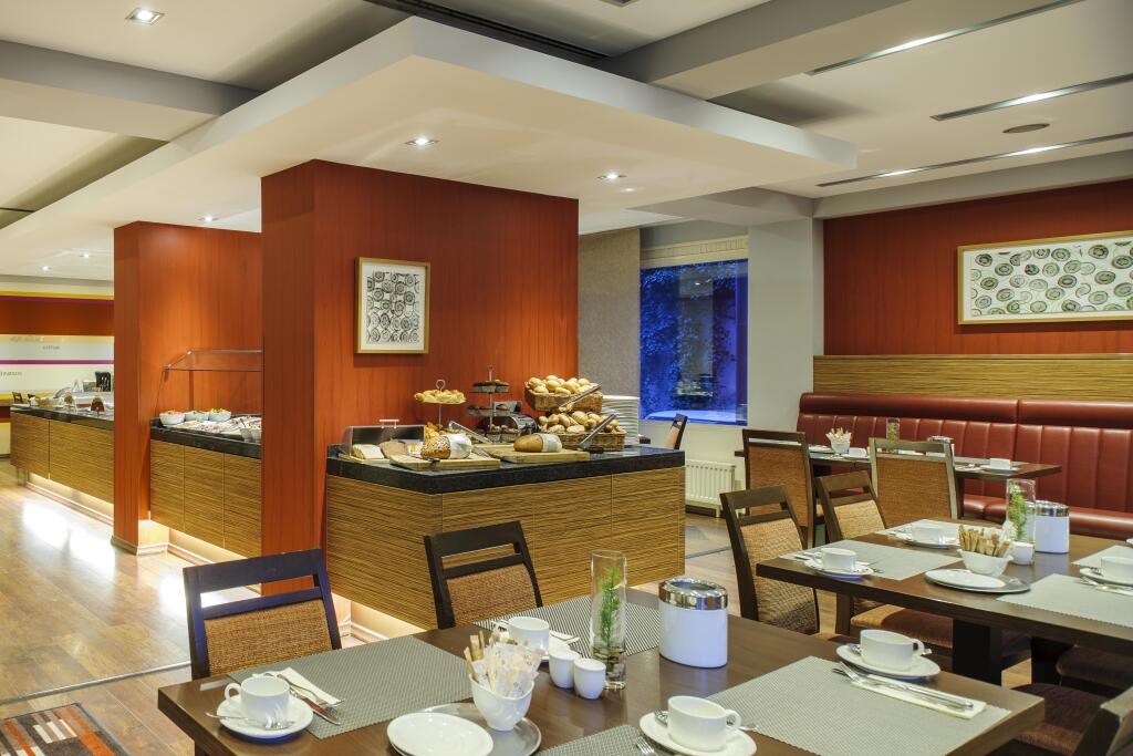 Обеденная зона в отеле представлена 2 ресторанами интернациональной кухни. Меню бара приятно удивит вас богатым ассортиментом закусок и обширной коктейльной картой.